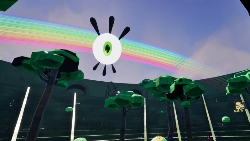 Parallèlement, j’ai travaillé en profondeur sur les matériaux et les effets visuels dans Unreal afin d’exploiter pleinement le travail des artistes. Cela inclut la création de skybox, de terrains dynamiques, ou encore le matériau complexe comme la lavande interactable du projet Voyage ou l’œil du projet Théâtre des Émotions, permettant un changement de pupille en temps réel et un suivi dynamique du joueur. J’ai conçu plusieurs post-process avancés malgré les contraintes de la VR, comme un filtre noir & blanc à recoloration progressive, un effet d’océan pour Humanize ou encore le VFX du personnage fil rouge, Flar, présent dans toutes les expériences.